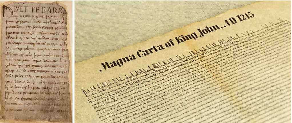 Beowulf, c. 800-1000 AD; The Magna Carta, 1215 AD.